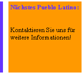 Wir organisieren Wochenendseminare in ausgewählten Seminarorten. Hier wird Spanisch mit allen kulturellen Elementen und den unterschiedlichen Lebensbereichen der hispanoamerikanischen Welt vermittelt. Pueblo Latino heißt lateinamerikanischen Alltag in einem oberösterreichischen Dorf erleben. Das Erlernen der spanischen Sprache mit Schwerpunkt auf Kommunikation wird unter anderem begleitet von Erzählungen, Bildern, Musik und was Lateinamerika sonst noch ins Haus bringen kann. Zielgruppe sind Teilnehmer, die Spanisch intensiv erleben wollen — also Spanisch rund um die Uhr.